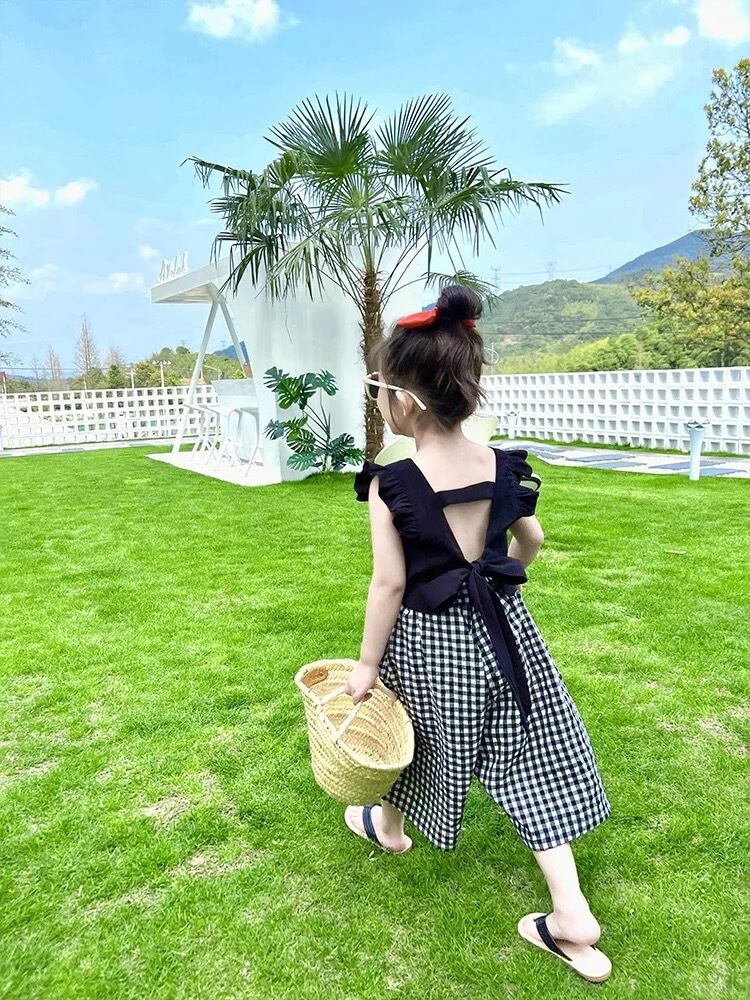 トップスのキャミは背中が特徴的で、ラブリーなデザインです。