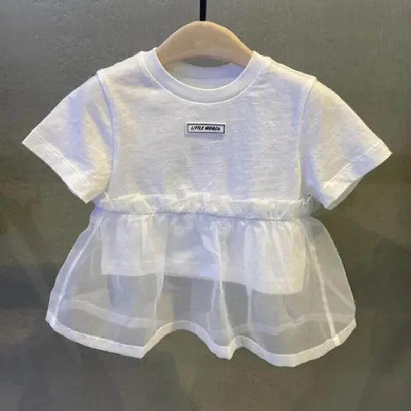 チュール素材が半袖Tシャツのシンプルなデザインをグッと華やかにしてくれます。
